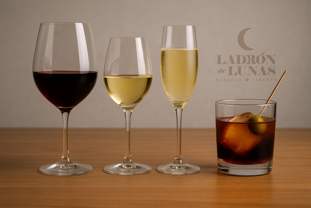 En Bodegas Ladrón de Lunas no solo cuidamos el vino desde el viñedo hasta la botella. También creemos que la forma en la que lo servimos influye directamente en cómo lo percibimos. Y si hay un detalle que marca la diferencia, ese es la copa.